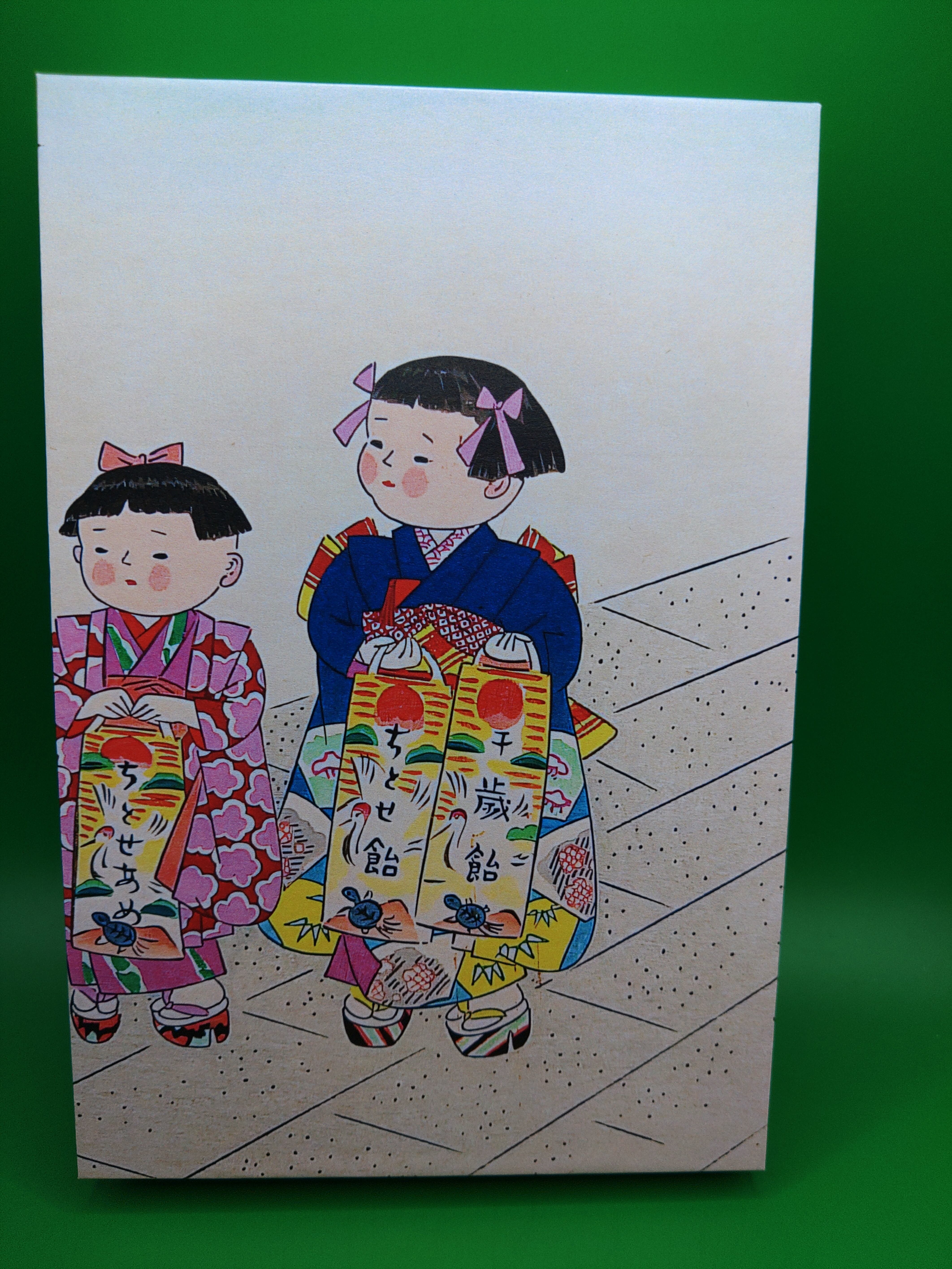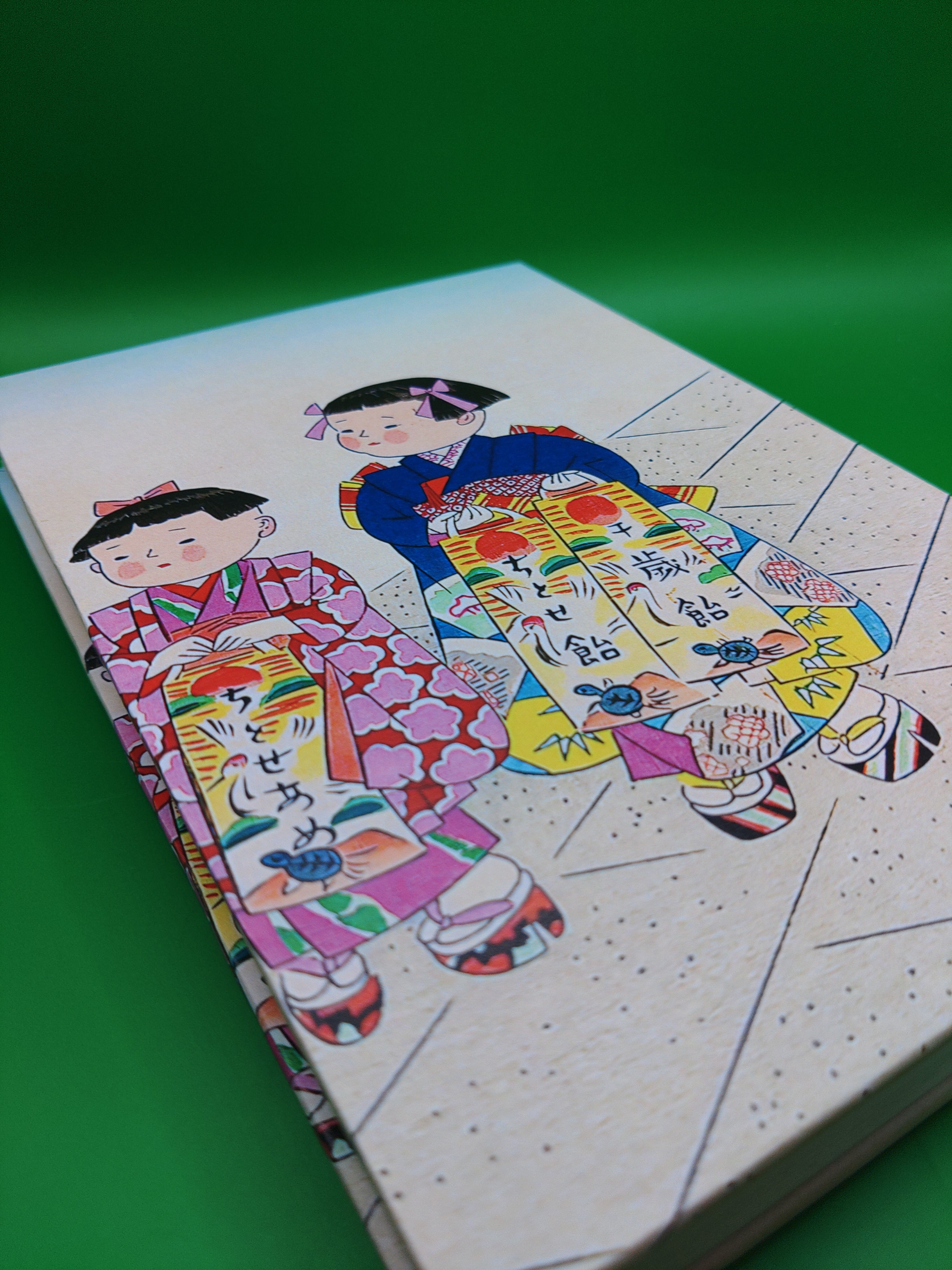 120mmx180mmの御朱印帳です 表紙は厚み3mmに上質紙使用 中身はかなりしっかりした和紙を使用しています ページ数は標準の48ページ 表紙は057清原斉 「七五三」です